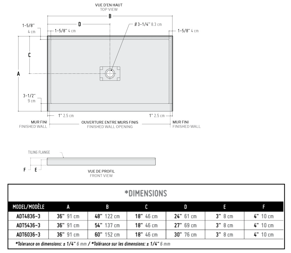 - Fleurco ADT In-Line Shower Base With Concealed Centre Drain With 3 Integrated Tiling Flanges